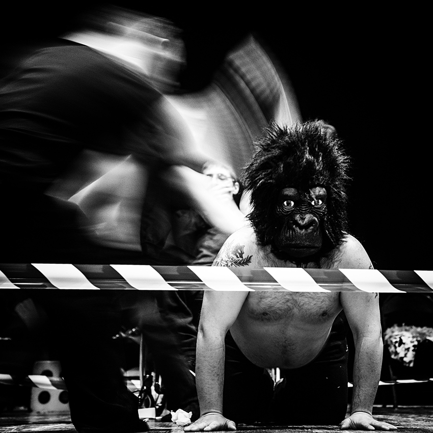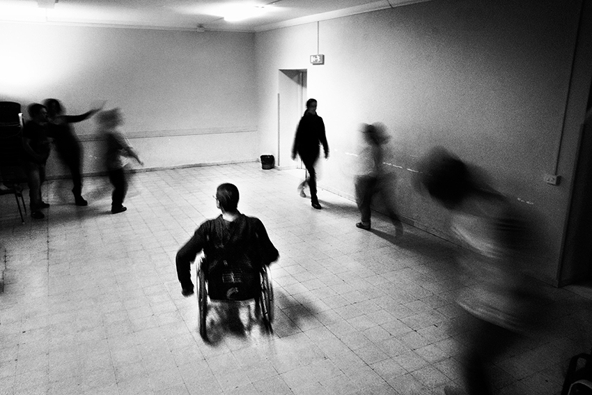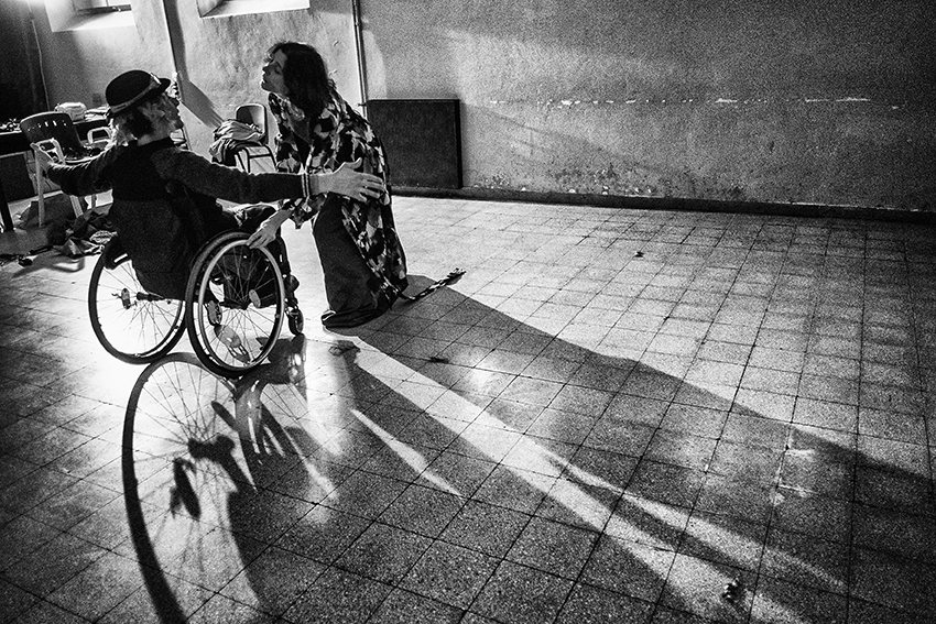 Non è stato difficile conquistare la fiducia degli attori, con i quali è nato fin da subito una positiva interazione emotiva, che ha consentito di scattare in assoluta libertà espressiva. Qui il mezzo fotografico, ben oltre l’essere lo strumento narrativo che la fotografia interpreta, è divenuto anche il mezzo comunicativo che ha consentito il percorso integrativo e terapeutico dove gli attori hanno scoperto il proprio corpo trasformato nella propria essenza di attore e con il quale hanno potuto verificare le proprie abilità.